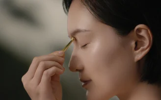 ใช้ปลายนิ้วนางแต้มครีมให้ทั่วบริเ